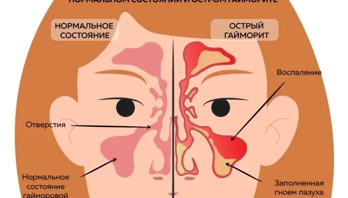 Гайморит — воспаление гайморовых пазух, часто возникающее у беременных женщин из-за ослабленной иммунной системы и гормональных изменений.